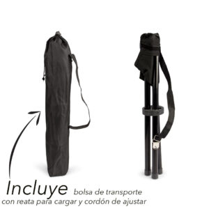 Silla plegable de 3 patas, incluye bolsa de transporte con reata para cargar y cordón de ajustar. Capacidad: Soporta hasta 80 Kg de peso. MATERIAL: Poliéster 600D 100% con recubrimiento de PVC. Bolsa de transporte en Poliéster 210D 100%. MEDIDAS: Abierta: 27 x 36 x 27 cm. Bolsa: 58 x 13 cm. ÁREA DE IMPRESIÓN…