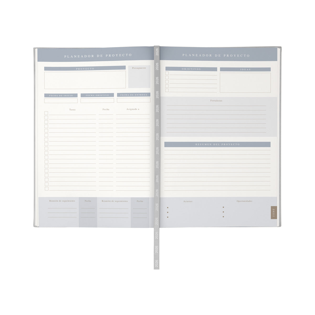 Descripción: Agenda diaria con 186 hojas. Contiene datos personales, calendarios 2025-2026-2027, planeador 2026, presupuesto de gastos, seguimiento de nuevos habitos, organizador de tareas, planeador de proyecto. Incluye caja individual.