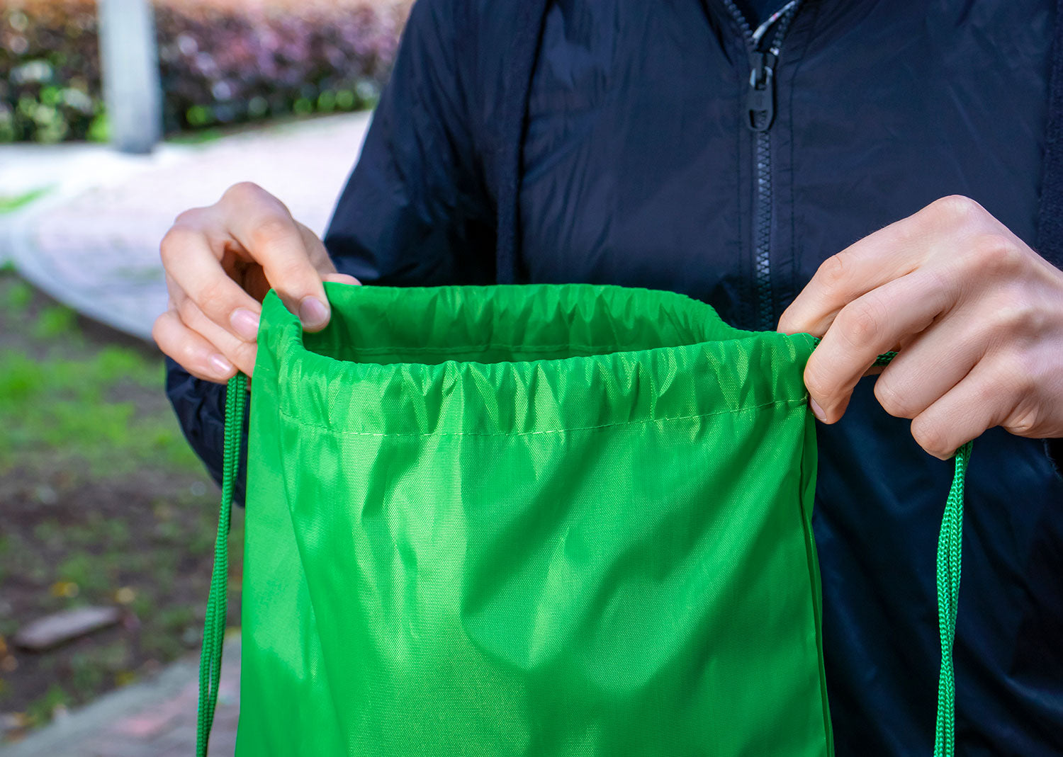 Mochila con cordón para ajustar y cargar. Cordón del mismo color de la bolsa.