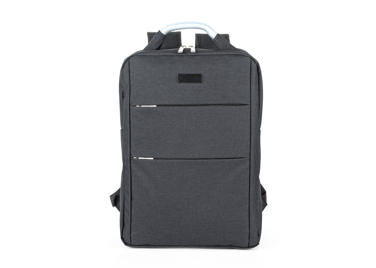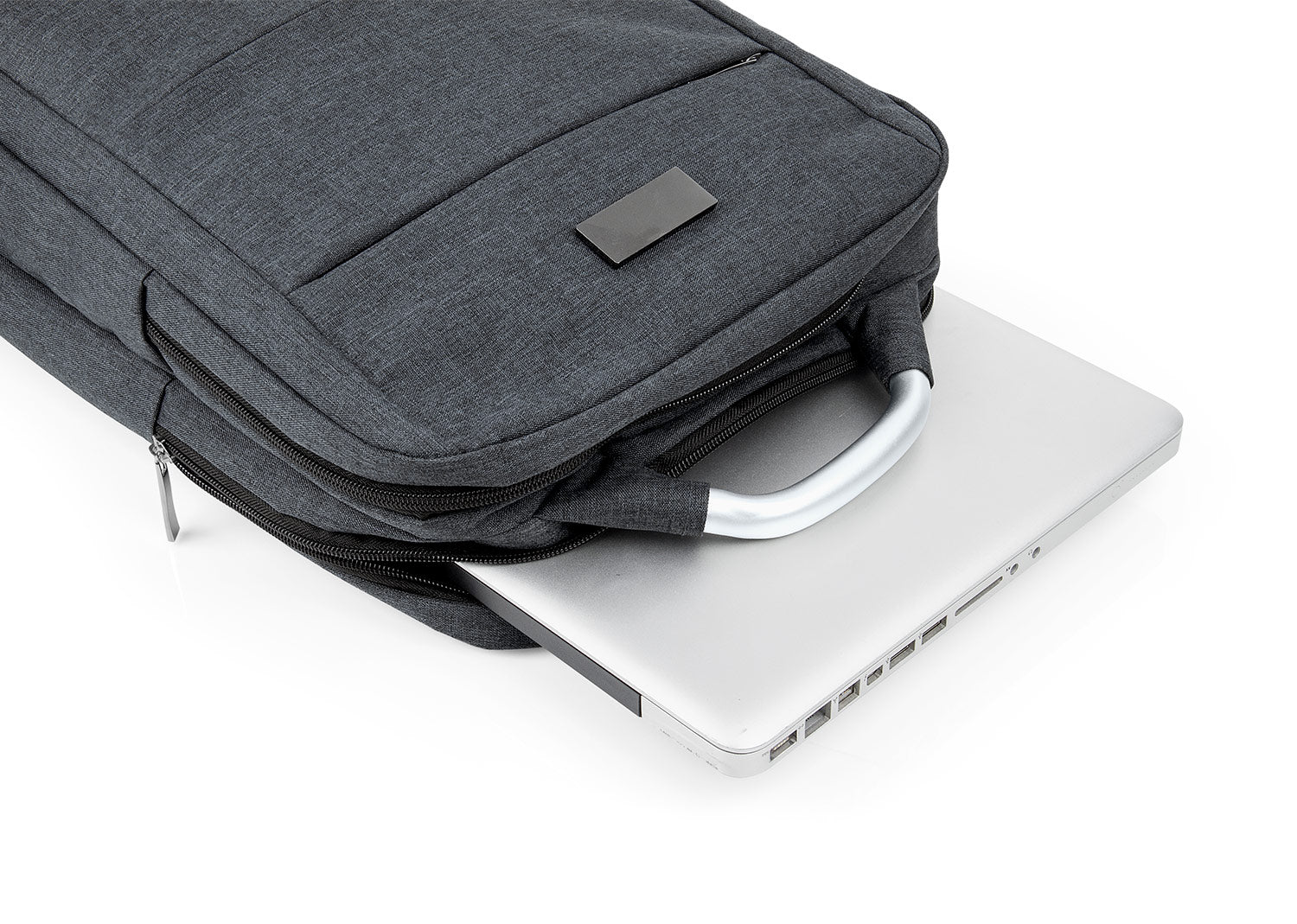 Morral con agarradera en Aluminio y cargaderas ajustables, un compartimento con velcro para portátil de hasta de 14” y el otro con bolsillo interior para bolígrafo y libreta. Doble Bolsillo frontal con cierre de cremallera. Incluye placa metálica para marcar láser.