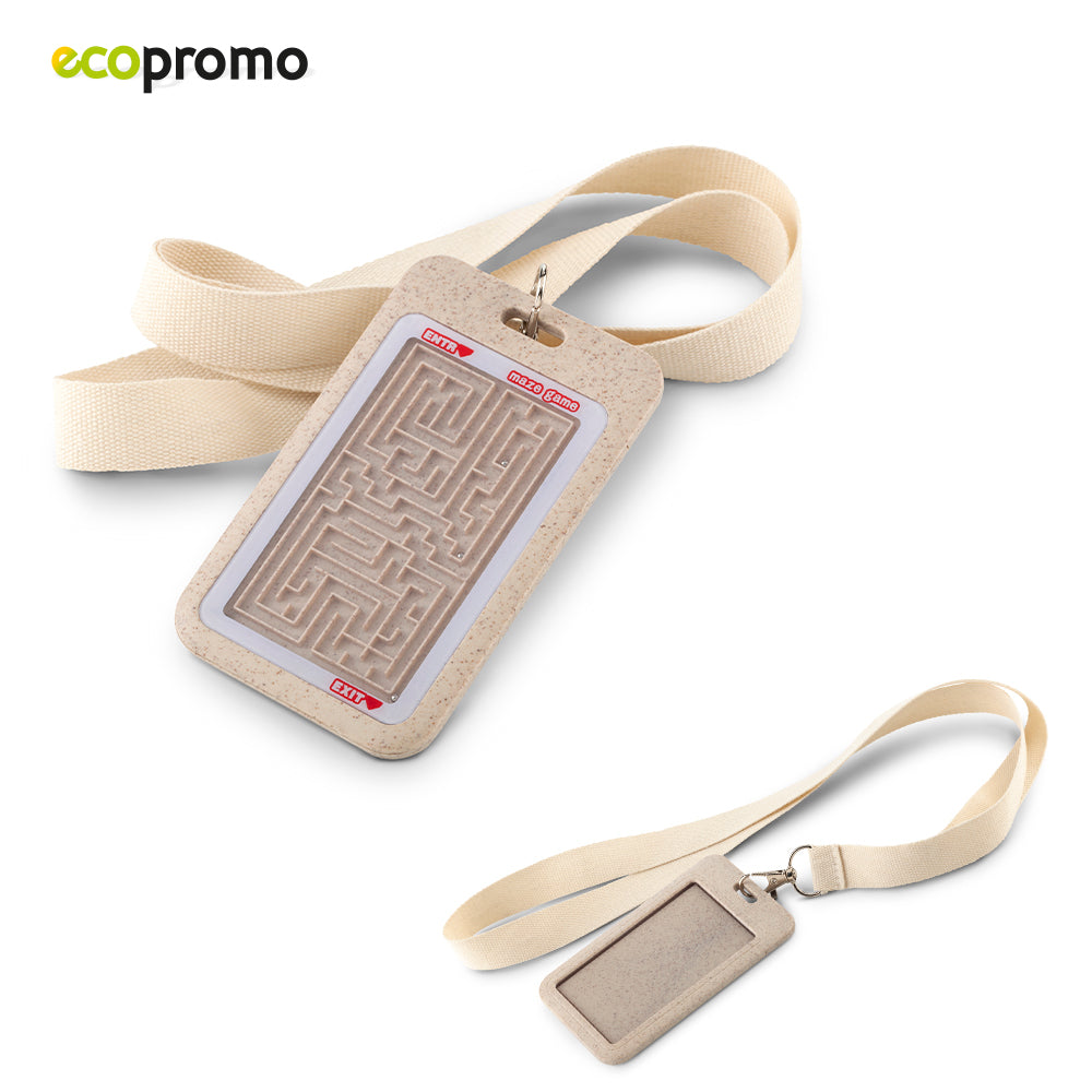 Cinta porta carnet con funda plástica en fibra de trigo para tarjeta de identificación y juego de laberinto.
