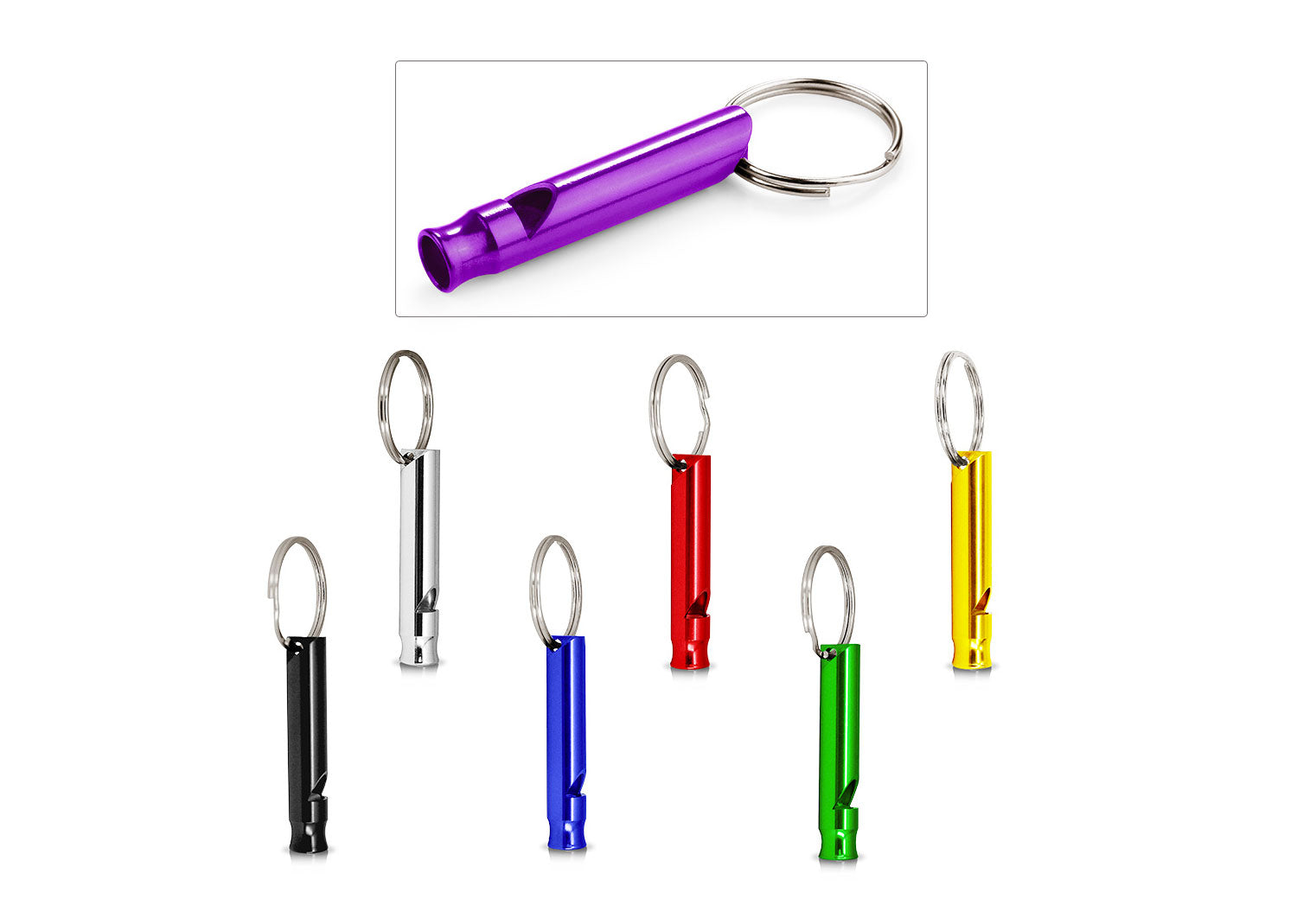 Silbato tubular metálico con argolla para llavero.