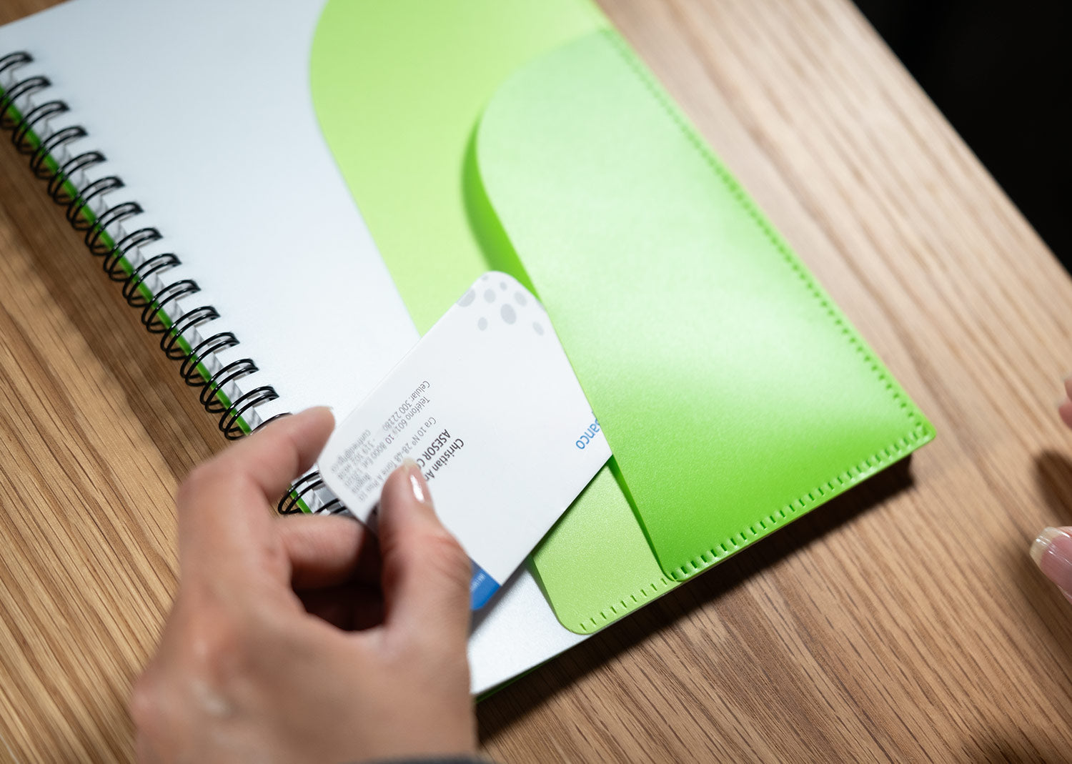 Libreta argollada con cubierta blanca con dos bolsillos de diferentes tamaños y colores. Contraportada en PP blanca. 70 hojas de papel 70 g/m² rayadas tamaño A5.