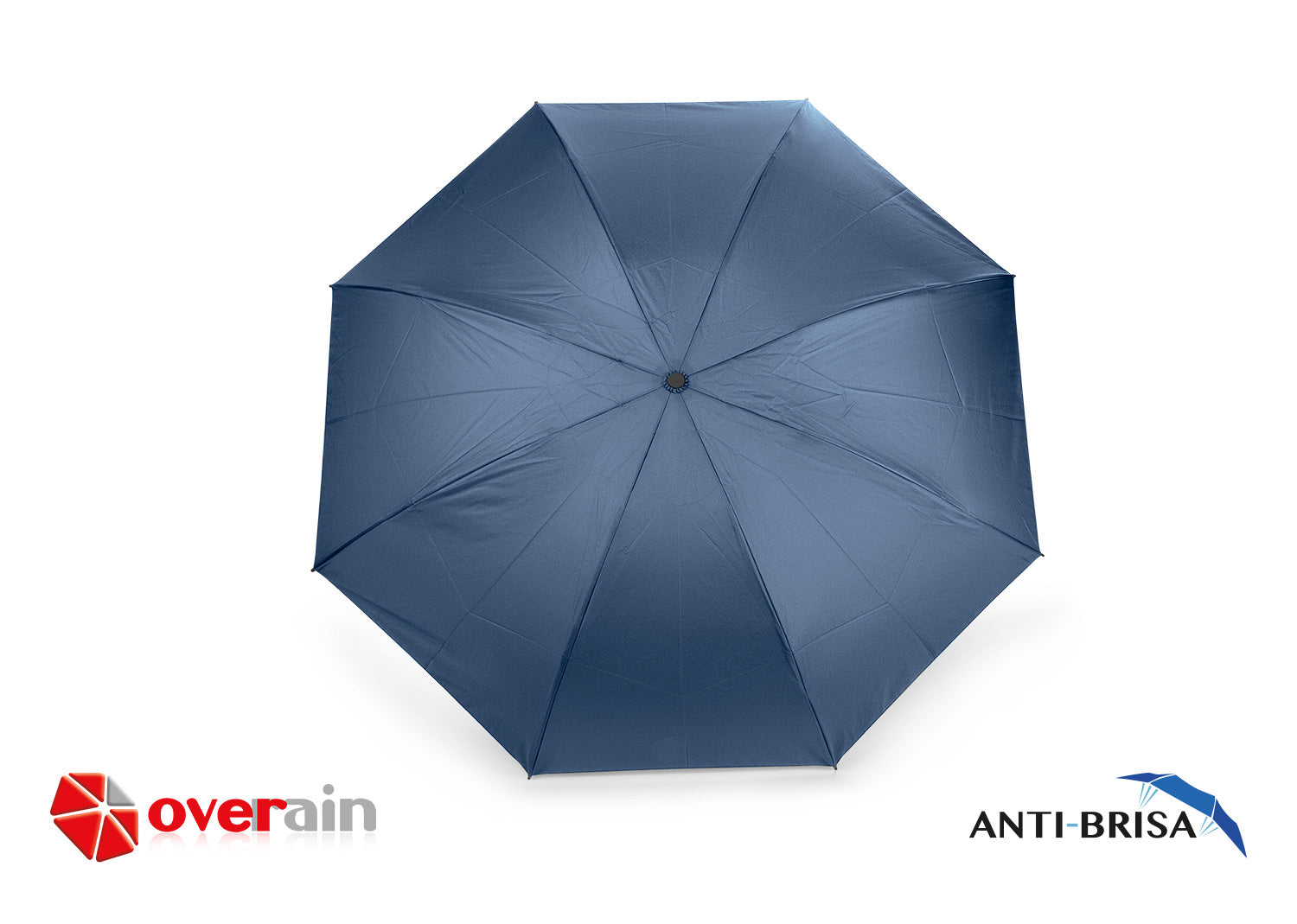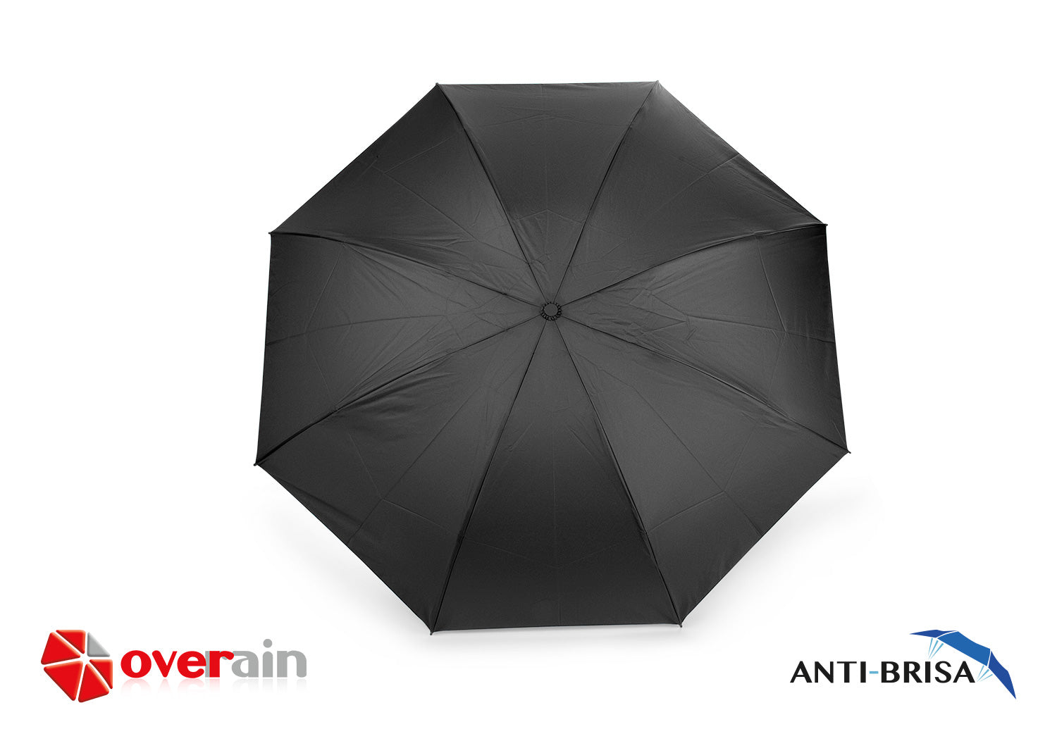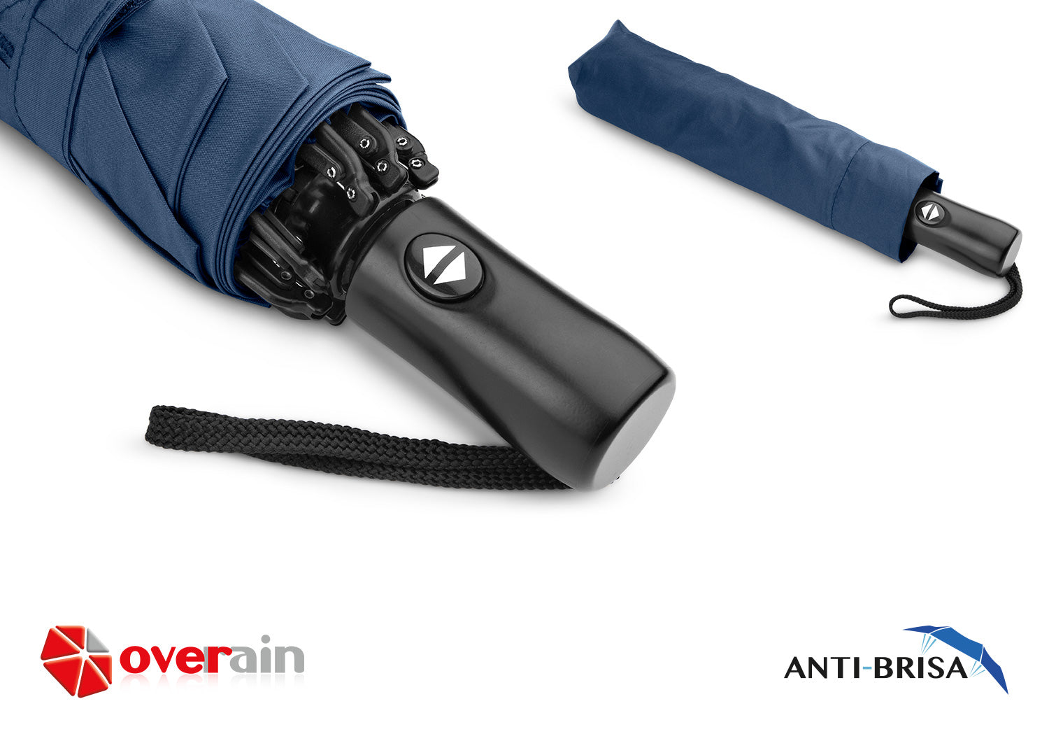 Paraguas reversible, 3 secciones, apertura y cierre automáticos, marco en fibra de vidrio y a prueba de viento. Antibrisa. marco en color negro, mango plástico. Tela pongee 190t. Incluye funda del mismo color del paraguas.