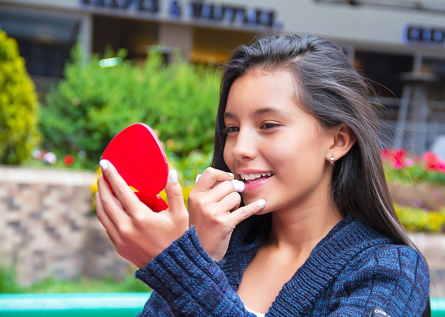 Espejo doble, vista normal y de aumento, cierre a presión. Diseño de corazón.