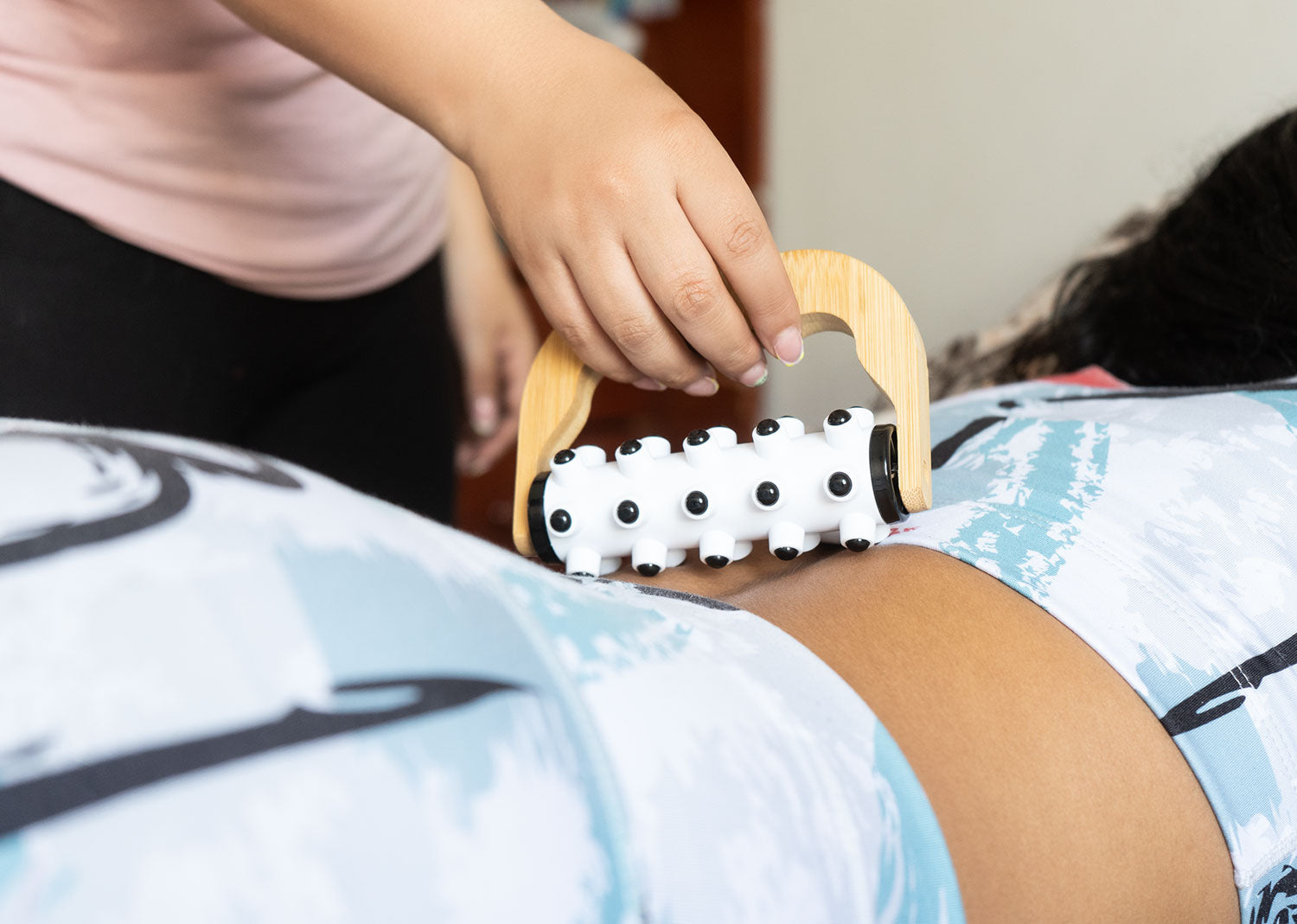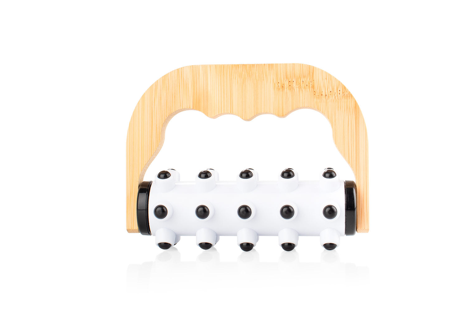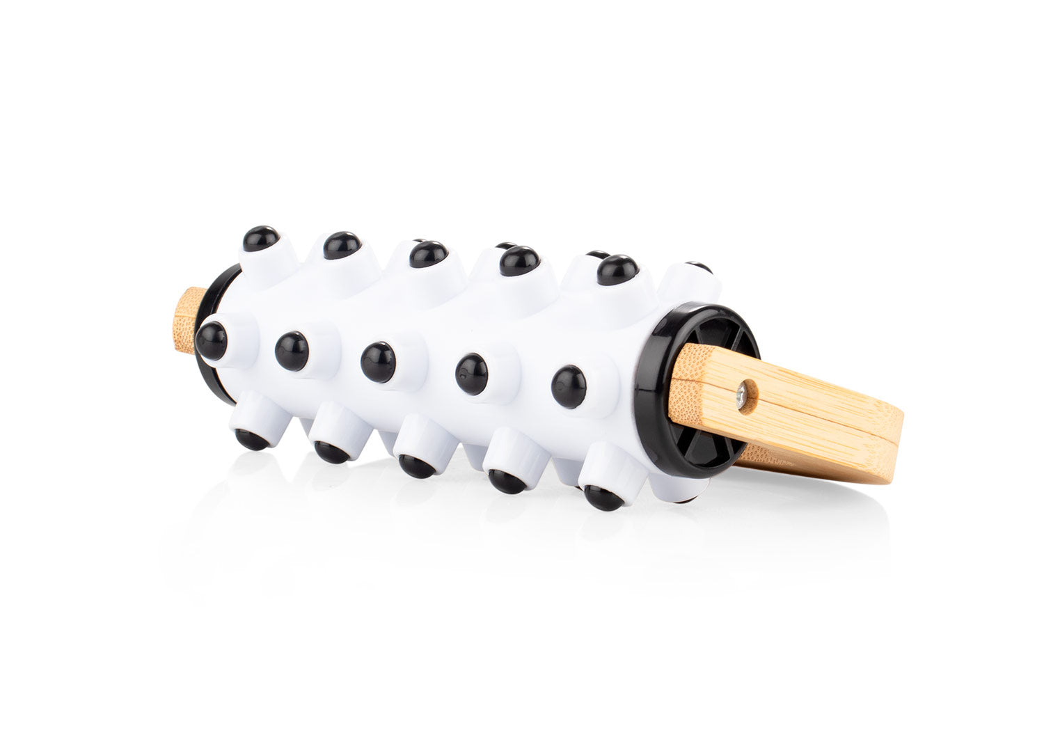 Masajeador plástico con agarre de bambú diseñado para brindar una experiencia relajante. Este masajeador cuenta con puntas redondas suaves que estimulan la circulación y alivian la tensión muscular.
