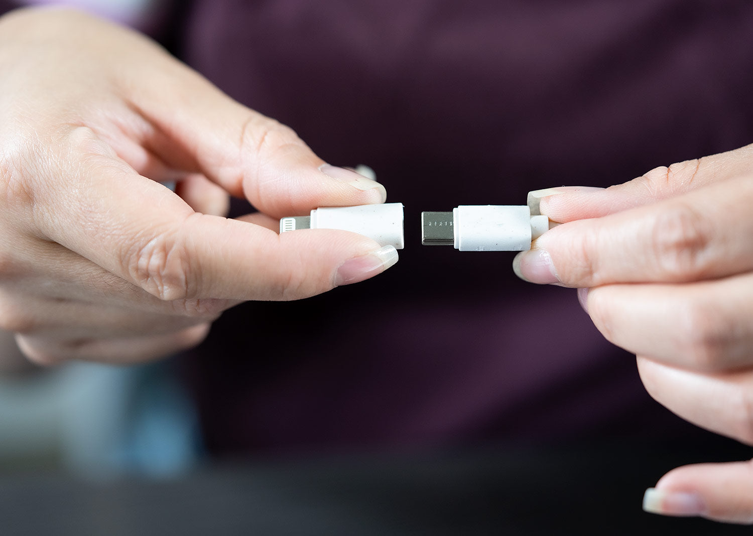 Juego de cables de carga con puertos USB, Tipo-C y Lightning, 5V DC 3.1, que incluye un adaptador para expulsar la tarjeta SIM del celular. El estuche puede usarse como soporte para el teléfono móvil.