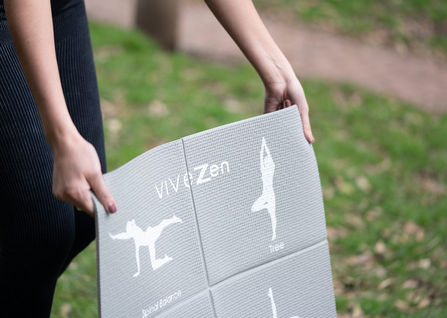 Esterilla de yoga plegable de PVC (61 X 173 X 0,5). 14 Divisiones: (30 X 25 X 0,5), con impresión de poses en la esterilla.